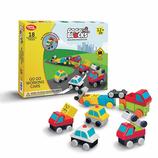 Bộ xếp hình nam châm Nhật Bản Go Go Working Cars 18 chi tiết
