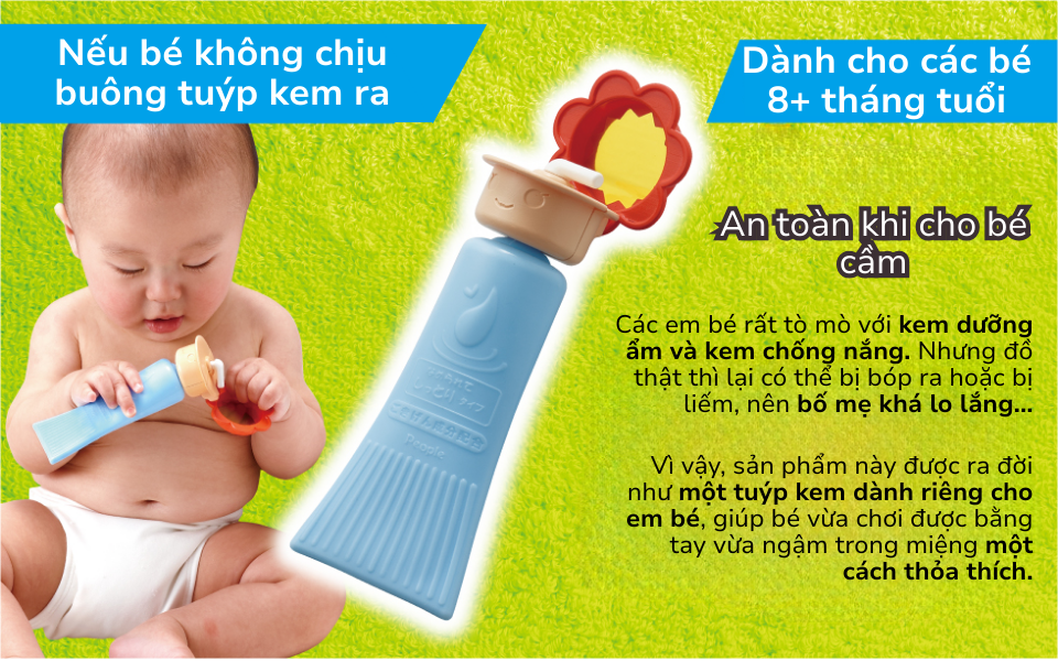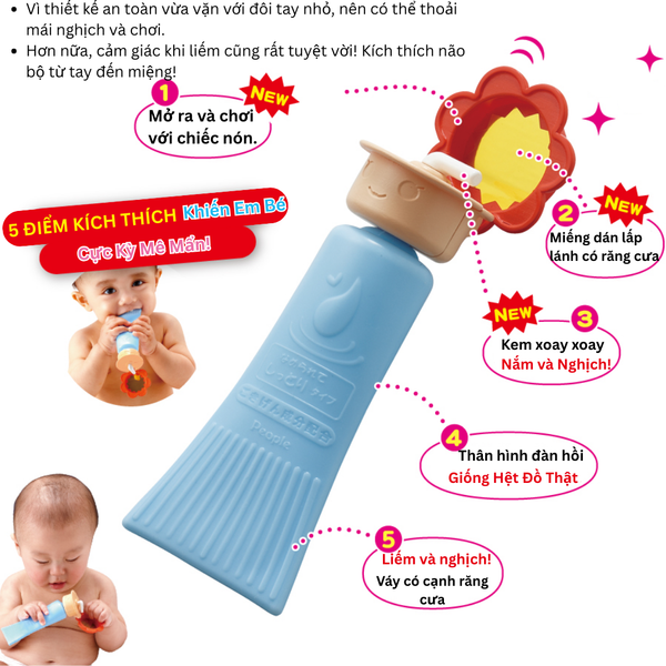 Mô tả sản phẩm tuýp kem đồ chơi bé dành cho bé 8 tháng tuổi từ PEOPLE Nhật Bản TB131