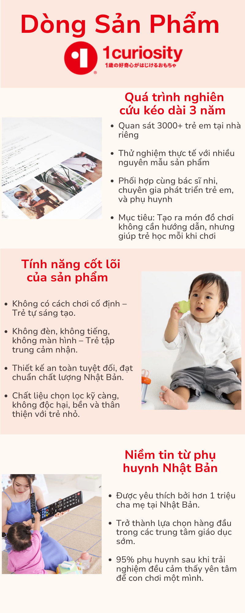 Dựa trên hơn một thập kỷ nghiên cứu hành vi khám phá của trẻ nhỏ, dòng sản phẩm 1Curiosity từ PEOPLE Nhật Bản được thiết kế để trẻ sau 1 tuổi có thể tự khám phá thế giới qua cảm nhận, không theo kịch bản hay hướng dẫn sẵn.