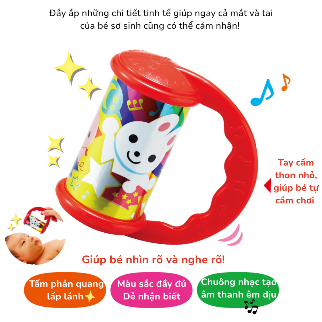 Thông tin sản phẩm trống lắc âm thanh trắng dành cho bé mới sinh từ PEOPLE Nhật Bản TB003 - Kích thích thị giác & thính giác