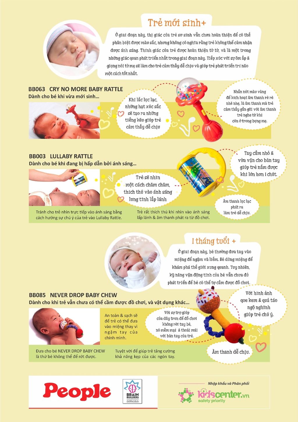 Dành cho bé 6 tháng tuổi: Với kích thước gọn, nhẹ được thiết kết phù hợp với bàn tay bé nhỏ của trẻ, Lullaby Rattle hỗ trợ phát triển các kỹ năng vận động khi bé bắt đầu biết cầm, nắm đồ vật. Bé sẽ nhận biết được cách điều khiển nhịp điệu của Lullaby Rattle khi học cách chơi một mình.