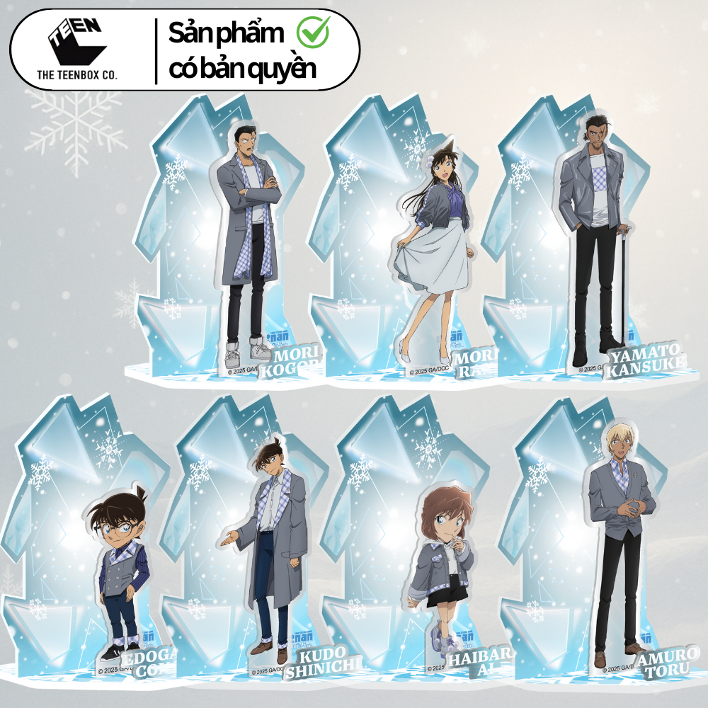 Thiết kế in sắc nét trên nền mica trong suốt, hiệu ứng băng tuyết nổi bật lấy cảm hứng từ chủ đề phim. Phù hợp trưng bày, sưu tầm hoặc làm quà tặng cho fan Conan 🎁✨