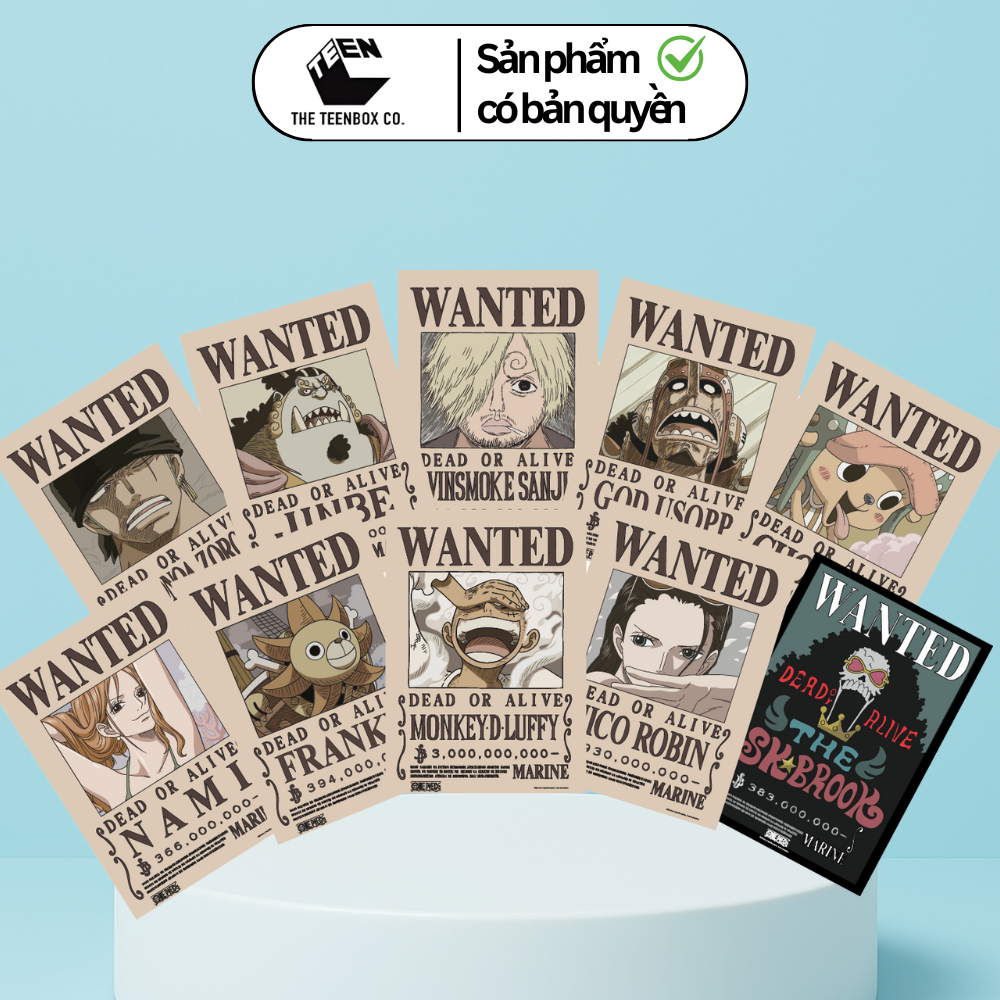 🏴☠️ Poster Truy Nã One Piece V2 Băng Mũ Rơm A3 (42x30cm) Chính Hãng TEENBOX – Tranh Wanted Luffy, Zoro, Sanji, Robin