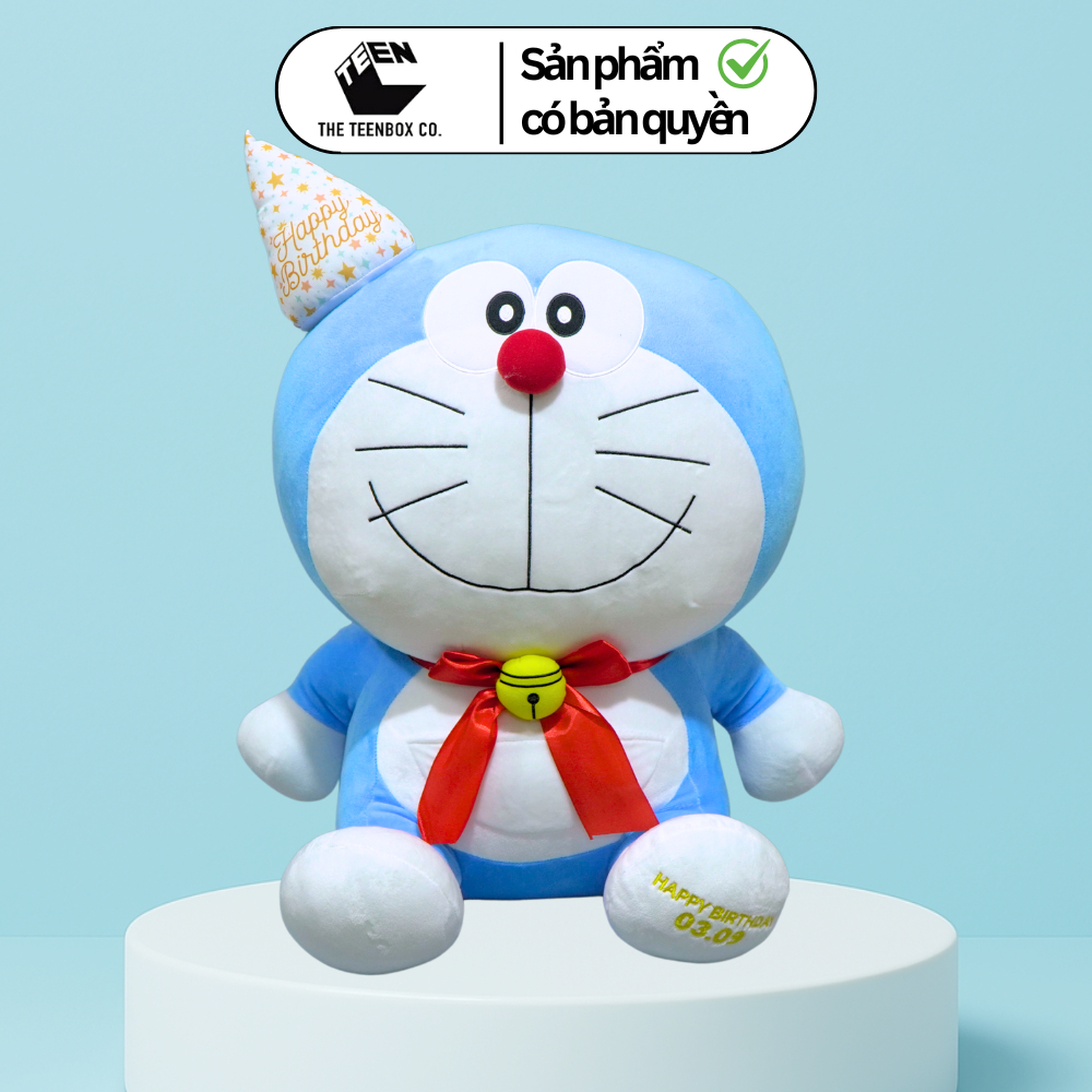 🎂 Thú Bông Doraemon Sinh Nhật Size M 33cm – Gấu Bông Cao Cấp, Bản Quyền Animation International, Teenbox Phân Phối 💙